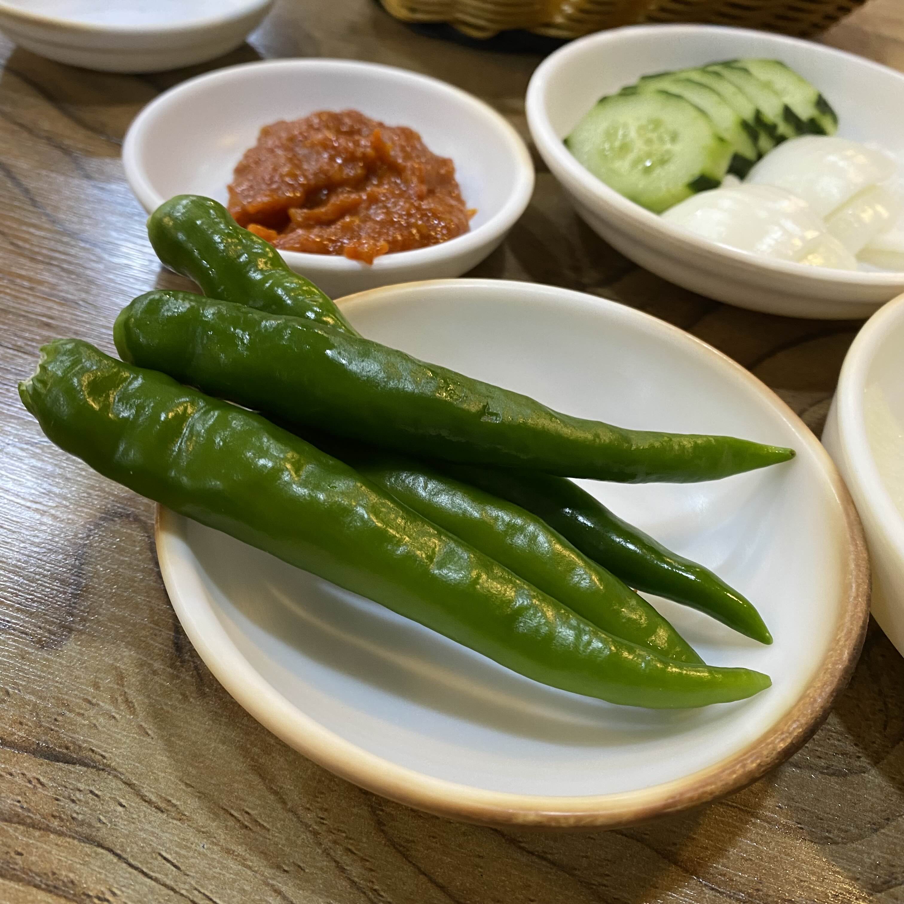 기본찬 쌈무, 마늘, 오이, 양파, 쌈, 오이냉국(⭐⭐)